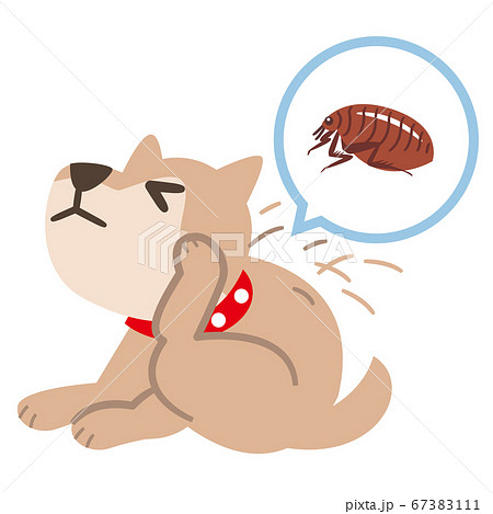 ノミで痒くて体をかきむしる犬のイラストレーション