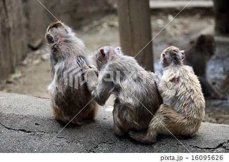 毛づくろいするニホンザル ニホンザルのグルーミング