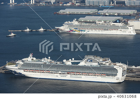横浜港に並んで停泊する大型豪華客船