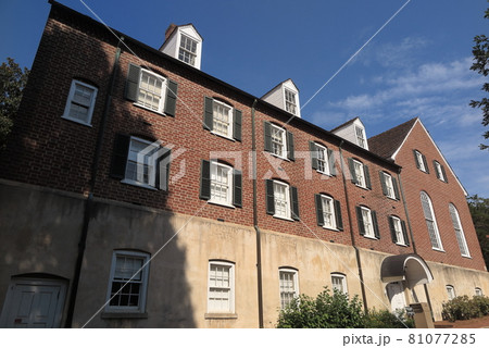 アメリカ、ノースカロライナ州セーラムにあるオールドセーラムの街並み