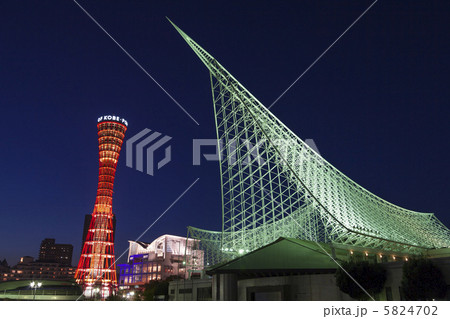 兵庫県神戸市中央区 神戸の夜景 ポートタワーとメリケンパーク