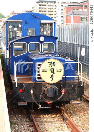 北九州市の門司港からめかりの海辺を走る観光列車潮風号