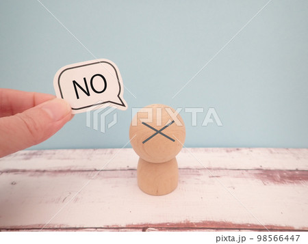 人形の顔にバツ印と指で持った吹き出しにNOノーの単語