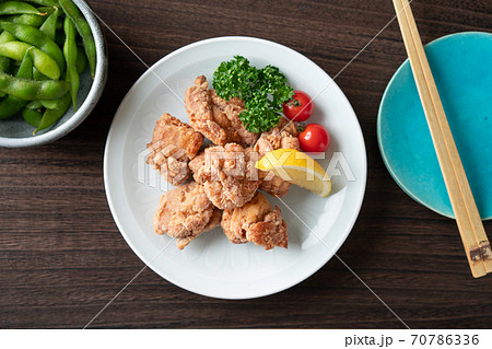 皿に盛り付けた鶏の唐揚げ