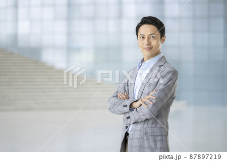 30代の男性 カメラ目線 ビジネスカジュアル ポートレート