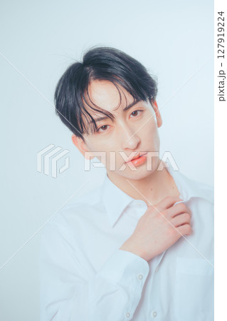 カメラ目線の20代の男性 ポートレート