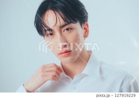 クロスフィルターで光を纏う韓国風メンズポートレート