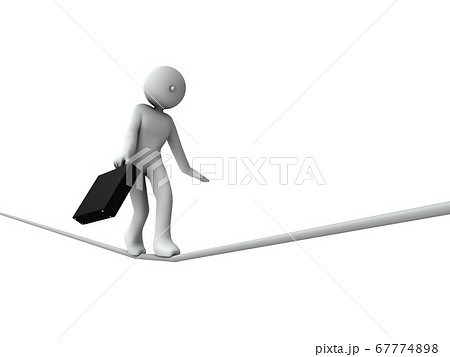 綱渡り状態のハイリスクなビジネス・白バック・3Dレンダリング