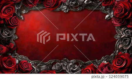 赤と黒のバラに囲まれたゴシック調の豪華フレーム