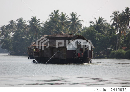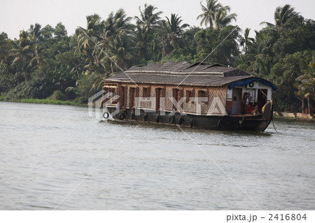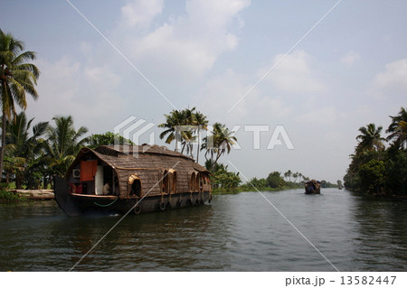南インドケーララ州アラップーザ近郊のバックウォーターを行くボート
