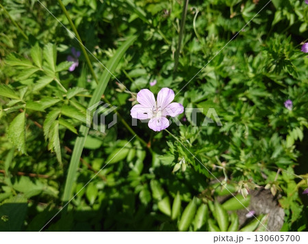 長野県の北アルプス槍沢大曲りに咲くハクサンフウロ