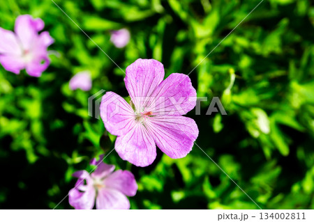 朝露に濡れるハクサンフウロ 戦場ヶ原の花