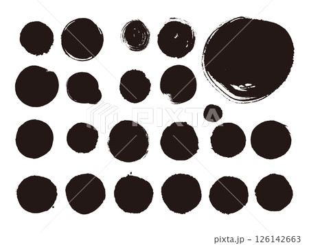 アイコン 筆文字 筆丸. 円 素材 単体 黒