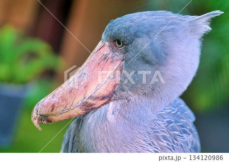 クールな表情のハシビロコウ 水辺の立ち姿