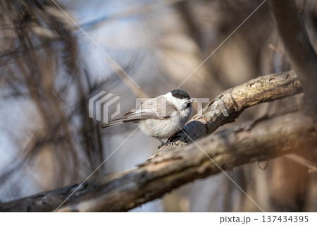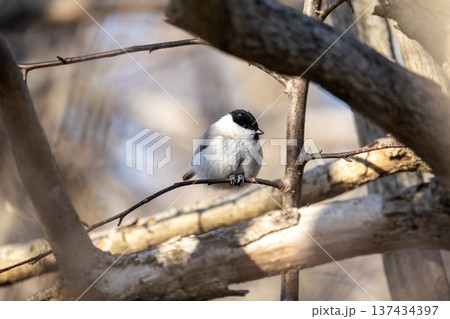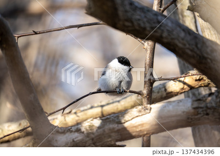 木の枝にとまってあたりの様子を伺っているハシブトガラ