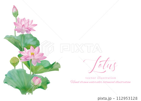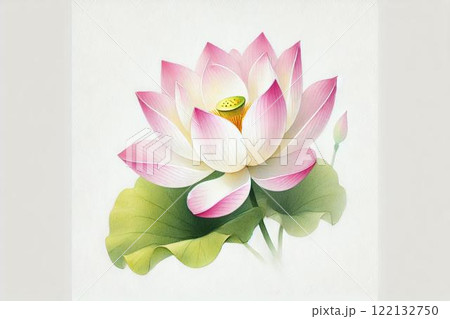 水彩で描いた白背景に蓮の花のイラスト素材 透過背景 コピースペース