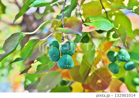 緑色のナンキンハゼの実と紅葉(秋、十一月)