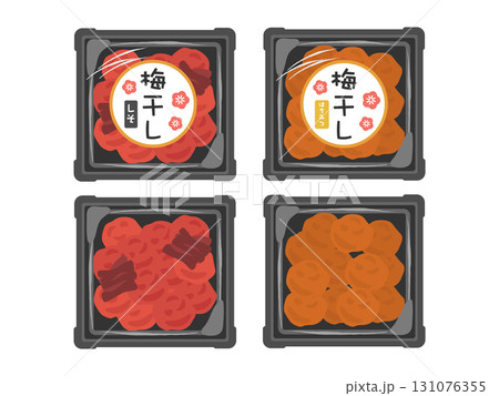 トレーに入った梅干し(しそ味、はちみつ味) イラストセット