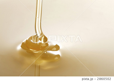 ガラスボールに注がれるハチミツシロップ 写真素材