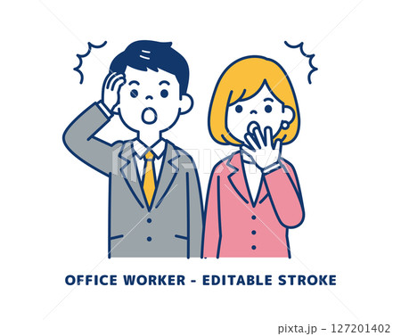 思い出して驚く、若い男女の会社員のベクターイラスト素材_線の編集可能