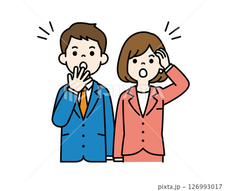 ビックリして白目をむく、ビジネスマンのベクターイラスト素材_男女セット_カラー