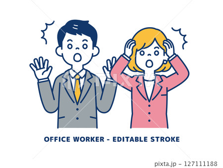 思い出して驚く、若い男女の会社員のベクターイラスト素材_線の編集可能_カラー