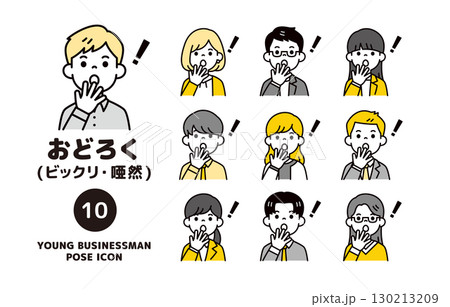 ハッとした表情で驚く、複数の若い会社員の上半身アイコンセット_ベクター