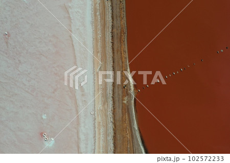 上空から撮影した美しいピンクレイク