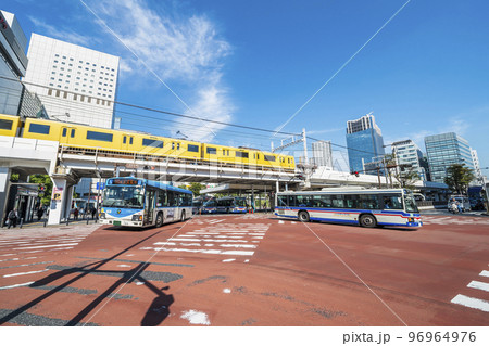 川崎駅東口の風景 駅前を通過する京急イエローハッピートレイン【神奈川県・川崎市】