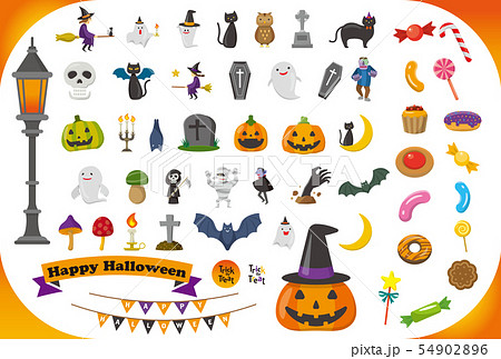 ハロウィンフレームベクターイラストセット ハッピーハロウィン トリックオアトリート