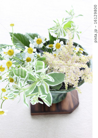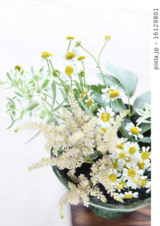ハツユキソウとアスチルベとマトリカリアの生け花(横 大きめ)