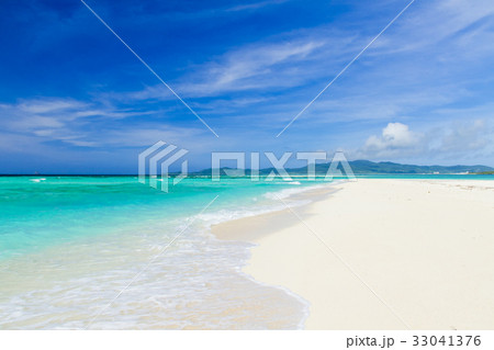 沖縄県離島久米島はての浜の風景写真無人島人気観光スポットエメラルドグリーンの海と青い空白い砂浜