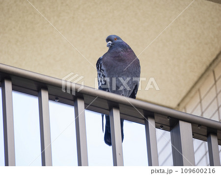 ベランダに鳩が住み着き糞被害。かわいい二羽の小鳩がベランダにいる様子。