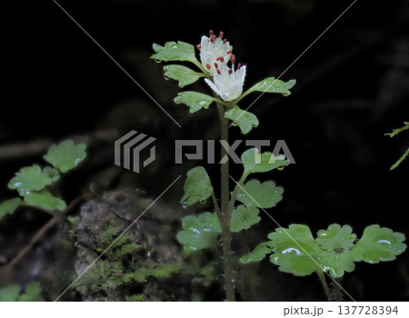 高尾山の宝物、赤い雄しべがかわいい白い花 花(3月)ハナネコノメ(花猫の目)03H4.3