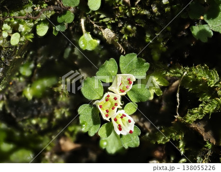 苔の中に咲くかわいい白い花・高尾山の宝物 花(3月)ハナネコノメ(花猫の目)53H4.3