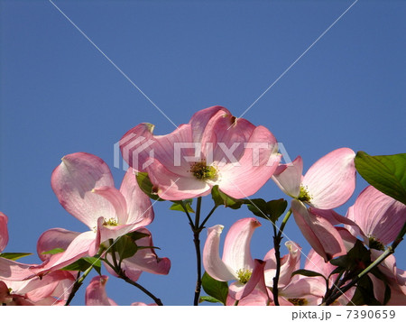快晴の青空にピンクノハナミズキ