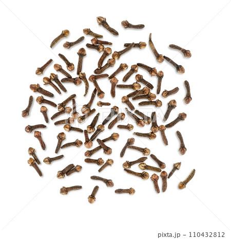 Dry spice cloves isolated on white background. Top view. Flat lay