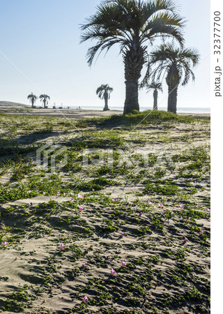 ハマヒルガオが咲く朝の九十九里浜本須賀海岸