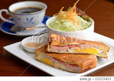 美味しいハムサンドと玉子サンドウィッチとコーヒー