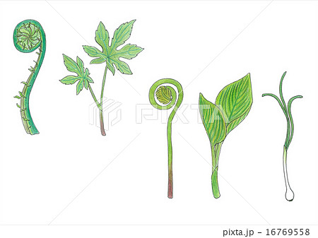 山菜(左から こごみ・しどけ・ぜんまい・うるい・のびる)