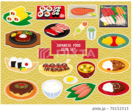 日本食のベクターイラストアイコンセット 寿司 カレーライス