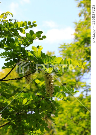 Common robinia, Robinia pseudoacacia with white flowers on the tree