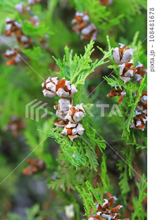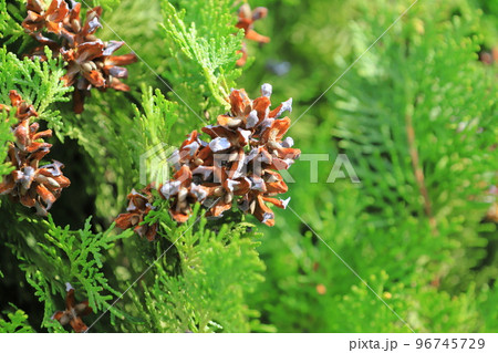 先端が黄色く色づいた児の手柏(コノテガシワ)