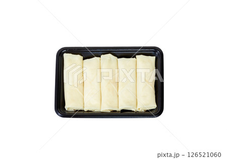 調理前のパック入りチルド春巻き【白背景・切り抜き】