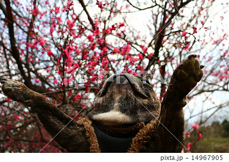 +梅の花をバックにハレルヤ〜♪+