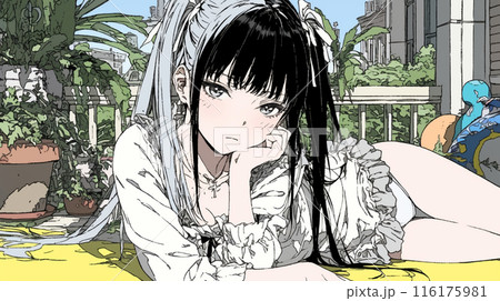 ゴシックロリータ(ゴスロリ)衣装の女の子:水彩画