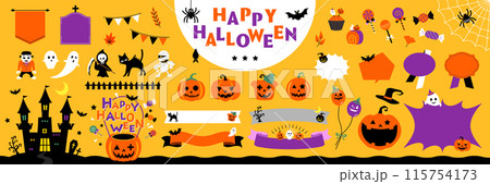 ハッピーハロウィンのイラスト・フレームセット テキスト無し /