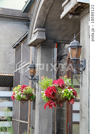 小樽の店先のハンギングプランター 小樽倉庫の入り口