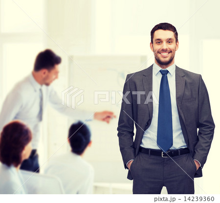handsome Business man presenting by hand