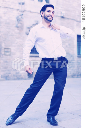 Passionate man dancing alone outdoors